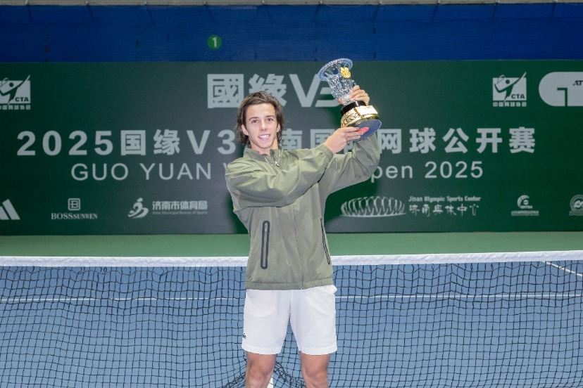 10月12日,2025国缘V3济南国际网球公开赛男单决赛在济南奥体中心网球场圆满收官。这场焦点之战汇聚两大实力选手——头号种子卡佐与美国名将麦克唐纳,最终卡佐凭借稳定发挥,以6-3/6-2击败对手,不仅首次亮相济南便成功夺冠,更一举拿下职业生涯最高级别单打冠军。