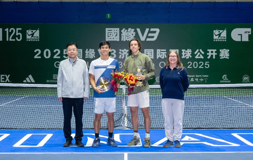 赛后,济南市体育局党组成员、副局长张居忠,ATP赛事监督安妮・比斯分别为男单冠亚军选手颁奖。谈及此次夺冠,卡佐难掩喜悦:“这一周我对自己的表现非常满意,今天更是发挥出了最佳水平。对手的实力很强,能赢下这场比赛并不容易。济南的场馆设施达到了一流水准,赛事组织灵活且专业,工作人员也都十分友善,这段参赛时光让我非常享受。”