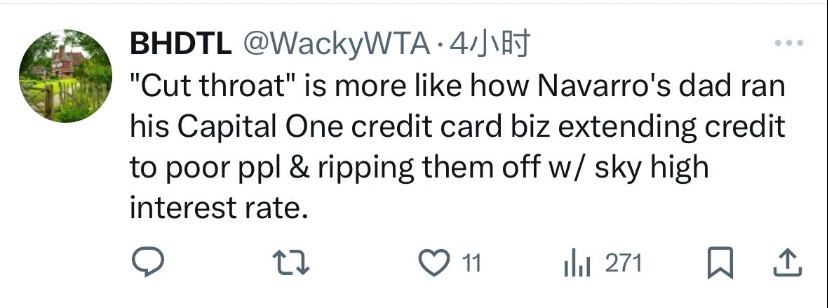 其中的一些评论更是将艾玛·纳瓦罗的家族身世一同调侃,直言:“残酷”一词更应该用来形容艾玛·纳瓦罗的父亲,他的公司通过借贷给穷人,收取高出天际的利息来压榨他们。