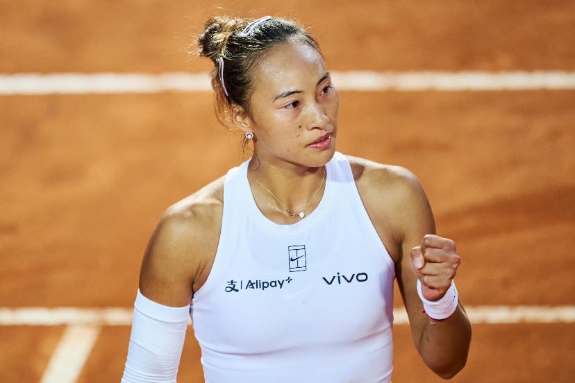 郑钦文去年在罗马首胜萨巴伦卡(图:李建艺)